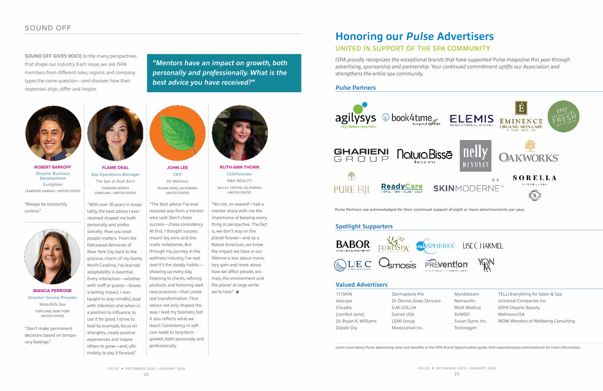 “ The best advice I’ ve ever received was from a mentor who said: Don’ t chase success— chase consistency. At first, I thought success meant big wins and dramatic milestones. But through my journey in the wellness industry, I’ ve realized it’ s the steady habits— showing up every day, listening to clients, refining products and honoring wellness practices— that create real transformation. That advice not only shaped the way I lead my business, but it also reflects what we teach: Consistency in selfcare leads to long-term growth, both personally and professionally. |
