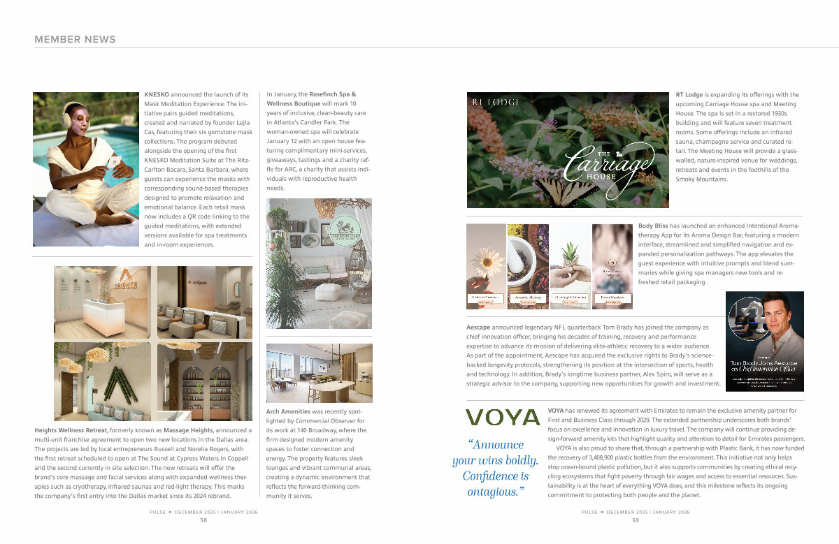 Aescape announced legendary NFL quarterback Tom Brady has joined the company as chief innovation officer, bringing his decades of training, recovery and performance expertise to advance its mission of delivering elite-athletic recovery to a wider audience. As part of the appointment, Aescape has acquired the exclusive rights to Brady’ s sciencebacked longevity protocols, strengthening its position at the intersection of sports, health and technology. In addition, Brady’ s longtime business partner, Alex Spiro, will serve as a strategic advisor to the company, supporting new opportunities for growth and investment.