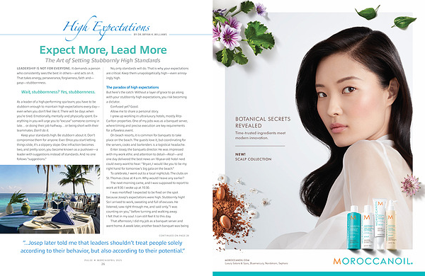 As a leader of a high-performing spa team , you have to be stubborn enough to maintain high expectations every day — even when you don ’ t feel like it . There will be days when you ’ re tired . Emotionally , mentally and physically spent . Everything in you will urge you to “ excuse ” someone coming in late … or doing their job half-way … or being short with their teammates . Don ’ t do it .
