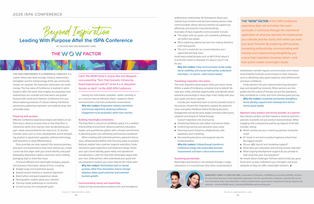 Catch The WOW Factor’ s Jaclyne Roe and Margaret Lora presenting“ Tech That Connects: Enhancing Guest Experiences with AI” at the 8 a. m. Education Session on April 1 at the 2026 ISPA Conference.