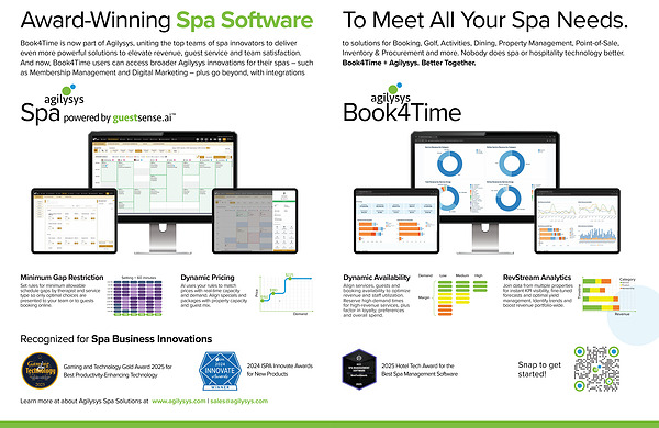 to solutions for Booking, Golf, Activities, Dining, Property Management, Point-of-Sale, Inventory & Procurement and more. Nobody does spa or hospitality technology better. Book4Time + Agilysys. Better Together.